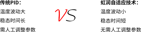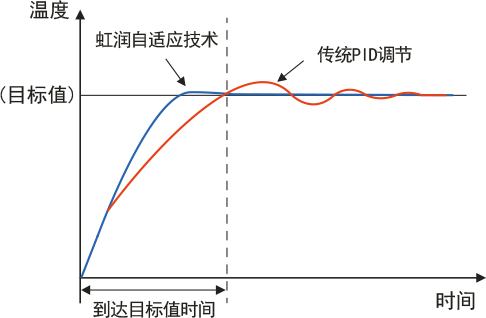 虹潤(rùn)自適應(yīng)控制技術(shù)可自動(dòng)整定出較佳PID值。監(jiān)視裝備的溫度控制狀態(tài),自動(dòng)調(diào)節(jié)PID值,對(duì)工件變化及裝備變化、環(huán)境變化等進(jìn)行較佳溫度控制。