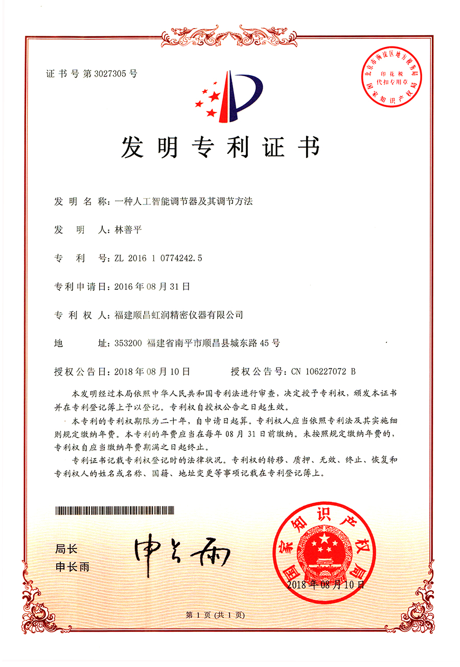 虹潤(rùn)于2015年推出人工智能算法的溫控器。經(jīng)過(guò)長(zhǎng)時(shí)間現(xiàn)場(chǎng)使用,溫控器無(wú)需人工整定參數(shù),無(wú)超調(diào)、欠調(diào),控溫精度高,基本達(dá)±0.1℃,得到用戶(hù)一致好評(píng)。控制算法獲4項(xiàng)發(fā)明專(zhuān)利,主持起草2項(xiàng)國(guó)家標(biāo)準(zhǔn),獲得6項(xiàng)軟件著作權(quán)。