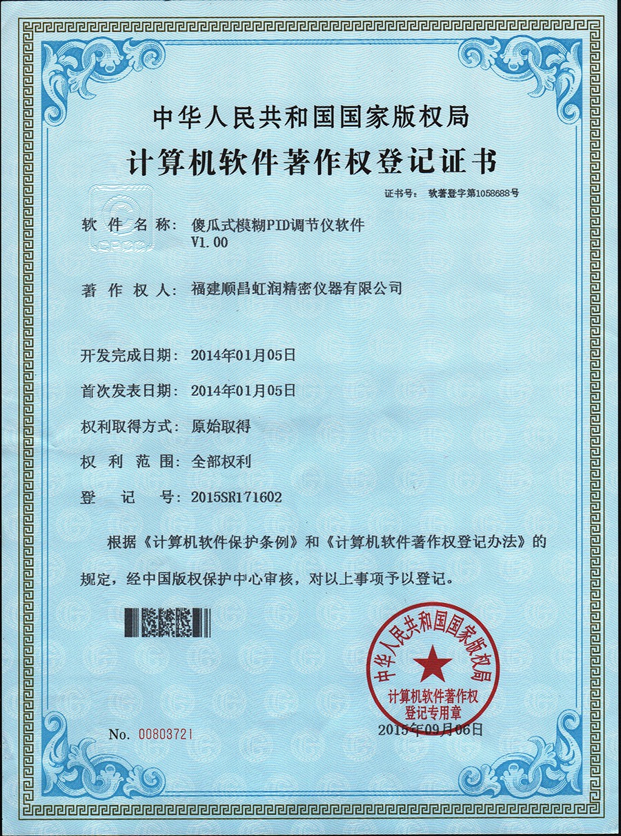 | 人工智能模糊PID調(diào)節(jié)器 軟件登記證書(shū)  | 傻瓜式模糊PID調(diào)節(jié)儀 軟件登記證書(shū)  |