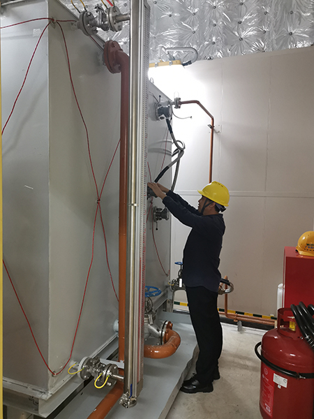 11月7日凌晨6點(diǎn),東方剛露出魚肚白。孫利勤踏著晨露,帶著虹潤(rùn)產(chǎn)品和測(cè)試安裝設(shè)備馬不停蹄來(lái)到了珠海港口,經(jīng)過(guò)2個(gè)多小時(shí)的海上跋涉,終于到了海上風(fēng)電升壓站現(xiàn)場(chǎng),對(duì)于客戶提到的技術(shù)要求,孫利勤先是對(duì)現(xiàn)場(chǎng)環(huán)境進(jìn)行測(cè)試和判斷,與客戶認(rèn)真溝通制定了技術(shù)應(yīng)用方案,并于次日成功安裝。虹潤(rùn)儀表現(xiàn)場(chǎng)表現(xiàn)良好,對(duì)海上升壓站TC690L柴油發(fā)電設(shè)備液位控制精度高且運(yùn)行穩(wěn)定,得到了客戶的好評(píng)。解決了客戶的技術(shù)需求,虹潤(rùn)人的心也放下了,這次跨越大海的技術(shù)服務(wù)終于不辱使命。