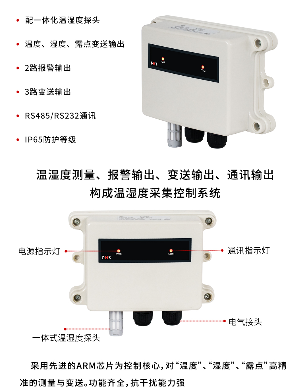 NHR-WS20系列一體化溫濕度變送器電路采用進(jìn)口微處理器芯片、進(jìn)口高精度溫濕度傳感器,確保溫濕度變送器優(yōu)異的可靠性。它具有精度高、穩(wěn)定性強(qiáng)、響應(yīng)速度快等特點(diǎn),可同時對被測環(huán)境的溫度、濕度進(jìn)行測量和控制。適用于通訊機(jī)房、辦公室、醫(yī)院、檔案館、博物館、賓館、樓宇自控等場所的溫濕度測量。