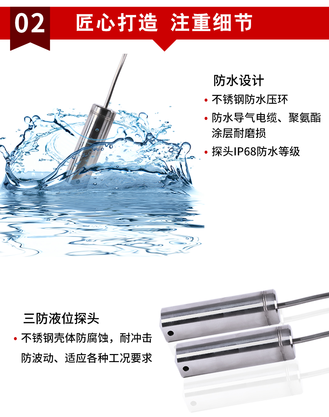 HR-L2系列鎧裝投入式液位變送器使用進(jìn)口高精度、高穩(wěn)定性擴(kuò)散硅壓力敏感芯片,通過高可靠性的放大電路,將被測液體的液位信號(hào)轉(zhuǎn)換成4~20mA DC標(biāo)準(zhǔn)信號(hào)。