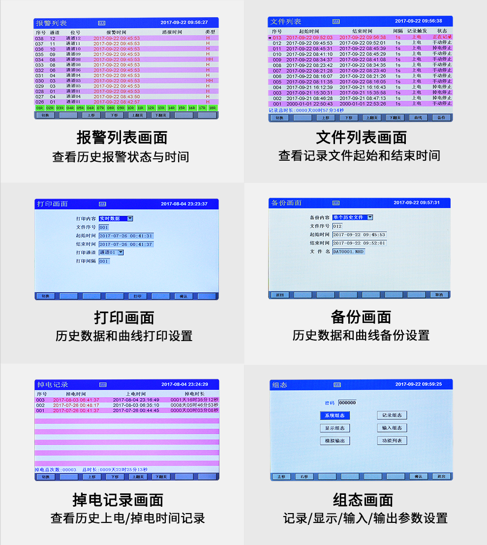 OHR-T系列觸摸超薄流量無紙記錄儀采用新型大規(guī)模集成電路,對輸入、輸出、電 源、信號采取可靠保護和強抗干擾設計。6路萬能輸入(可組態(tài)選擇輸入:標準電壓、 標準電流、熱電偶、熱電阻、頻率、毫伏等)其中可帶2路流量輸入。具有繼電器報警 輸出、變送輸出,饋電輸出,流量積算,溫壓補償功能。