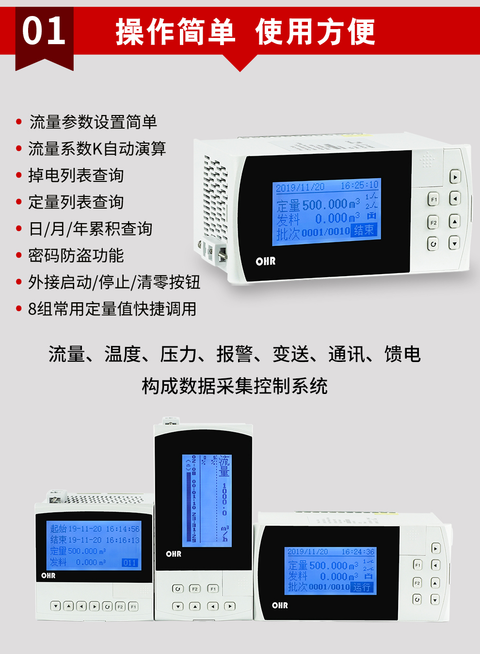 OHR-F670系列液晶定量控制流量積算儀是一款接收來自各種流量傳感器(如渦輪、渦街、電磁等流量計) 及電磁閥泵體配套組成并能對流量進行積算、對定量進行控制的流量測量控制系統(tǒng)。