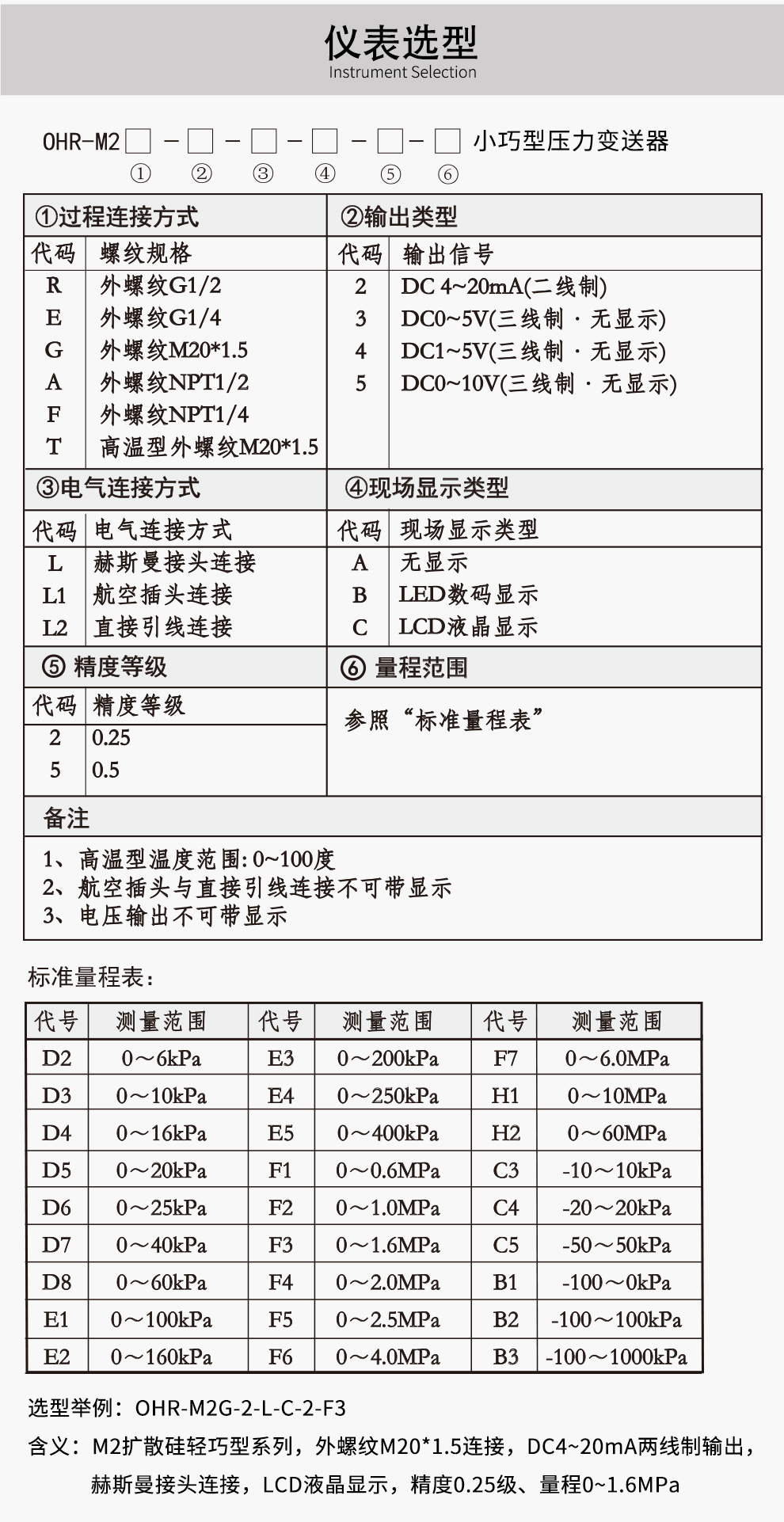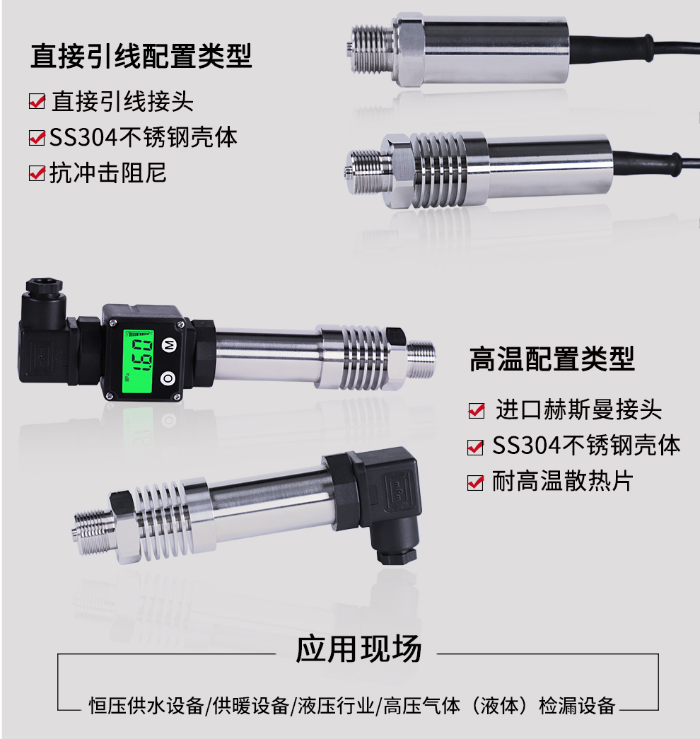 M系列小巧型壓力變送器內(nèi)部使用擴(kuò)散硅壓阻式傳感器,其結(jié)構(gòu)簡(jiǎn)單,體積小巧,易安裝;以其優(yōu)良的可靠性、適用性、靈活性和多樣性,廣泛的應(yīng)用于航空、航天、石油、化工、冶金、電力、水利等工業(yè)過程現(xiàn)場(chǎng)的壓力測(cè)量和控制。