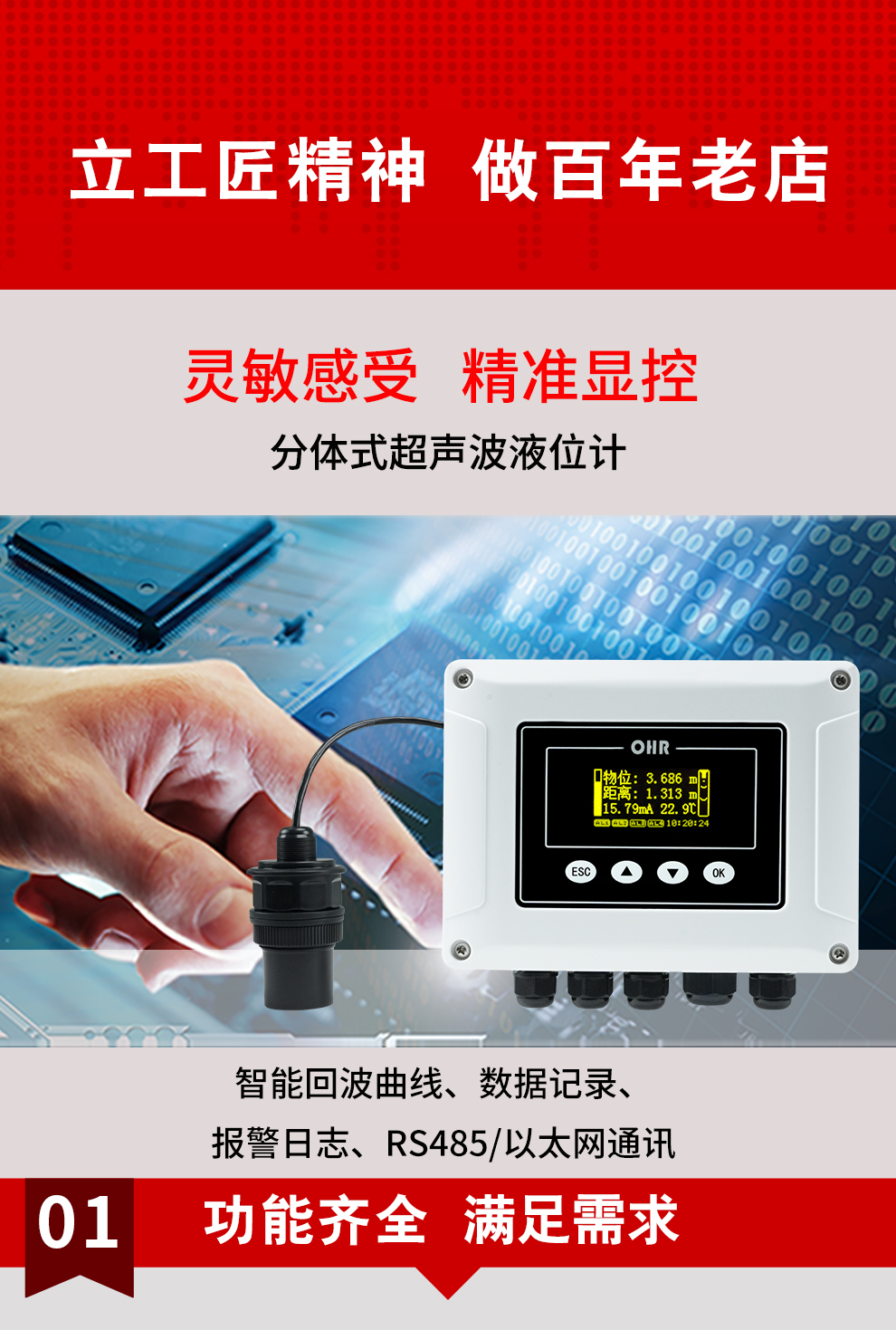 OHR - LC11 系列分體式超聲波液位計(jì),是一款功能全面且便捷實(shí)用的液位 / 物位測量儀器。它具備數(shù)據(jù)記錄與報(bào)警日志功能,安裝與維護(hù)都極為簡便。該液位計(jì)采用非接觸式測量,無需與介質(zhì)直接接觸,就能精準(zhǔn)滿足大多數(shù)液位 / 物位的測量需求。