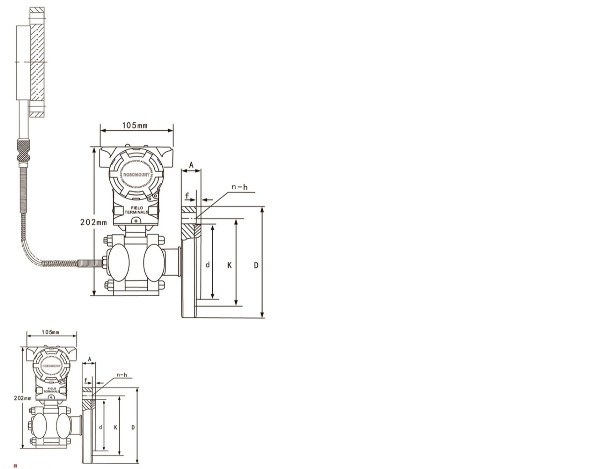 HR-3051LT液位變送器是一種直接安裝在管道或容器上的現(xiàn)場變送器。由于隔離膜片直接與液體介質(zhì)相接觸,無須將正壓側(cè)用導(dǎo)壓管引出,因此可以測量高溫、高粘度、易結(jié)晶、易沉淀和強(qiáng)腐蝕等介質(zhì)的液位、壓力和密度,然后將其轉(zhuǎn)換成4~20mA.DC信號輸出。