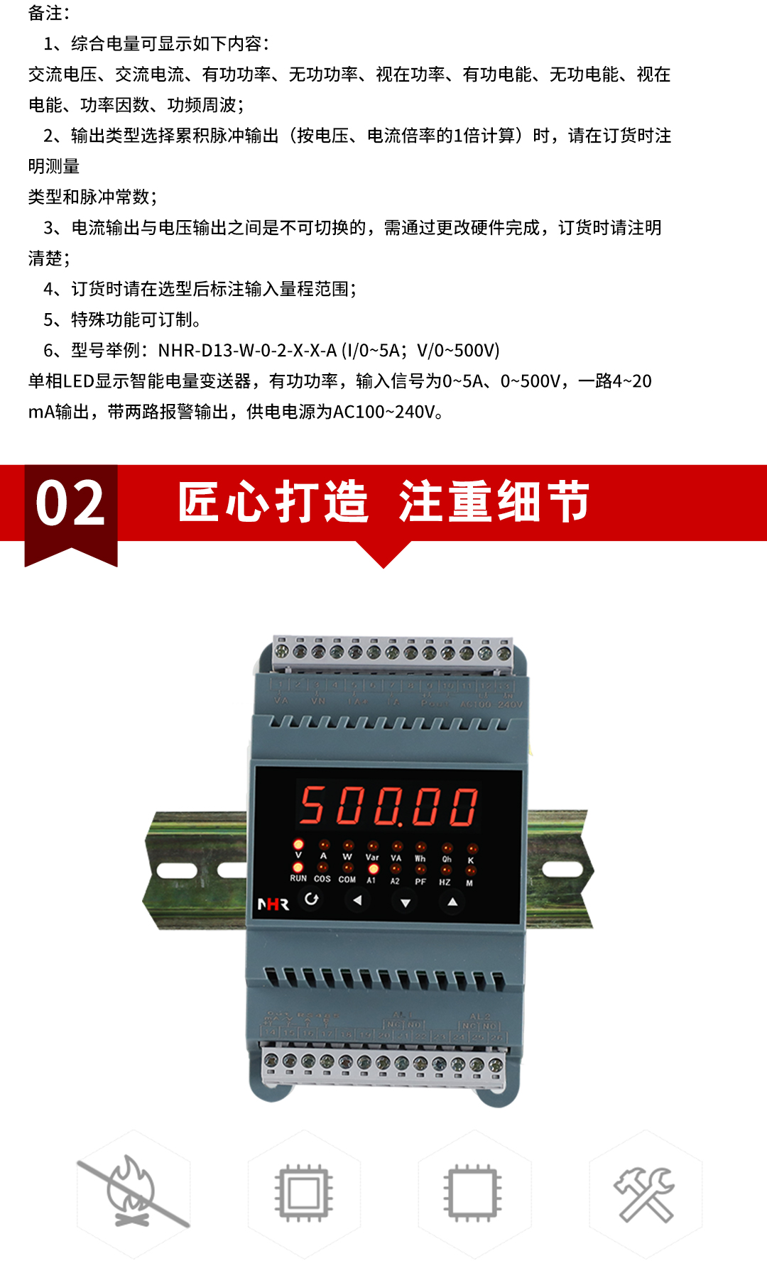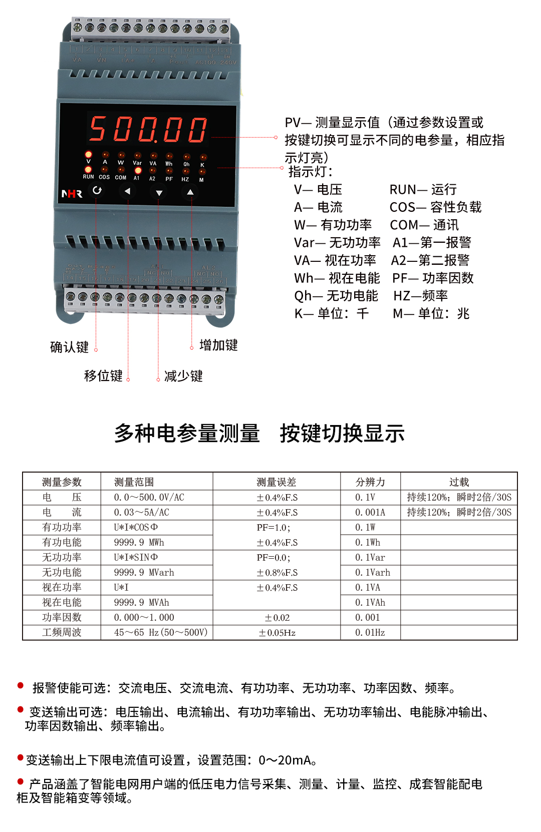 NHR-D13系列單相LED顯示智能電量變送器是一款高性價(jià)比的智能電參數(shù)變送器,采用大規(guī)模集成電路,以低功耗的微處理器為核心,帶五位LED數(shù)碼顯示及報(bào)警指示燈指示,配備按鍵操作更加方便。